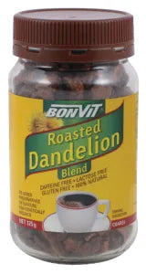 Our Bonvit Roasted Dandelion Blend is made from 100% roasted natural dandelion and chicory roots. This delicious, caffeine free alternative to coffee can be enjoyed by the whole family, day or night.