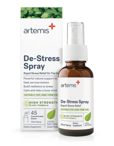 A high strength plant formula to support rapid stress relief and ease nervous tension. This 100% natural product harnesses the power of plants traditionally used for supporting feelings of stress, irritability and restlessness. Formulated by an expert medical herbalist using high levels of active ingredients, Artemis De-Stress Spray is ideal for people with busy minds and lives, looking for a potent natural product to support them through times of stress and to build longer term resilience.