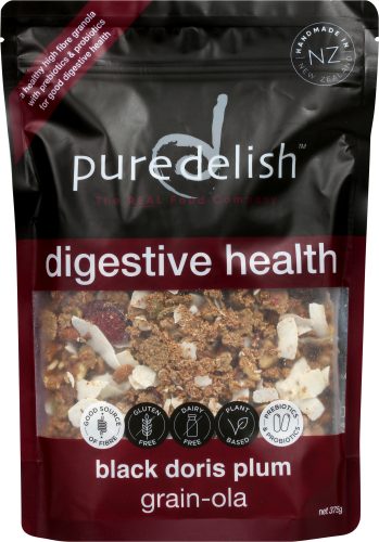 Our black doris plum grain-ola is a mix of nutrient dense nuts, seeds, teff flakes and tangy black doris plum pieces. With added plant-based calcium, probiotics and prebiotics, this delicious granola is the perfect healthy and nutritious snack or breakfast