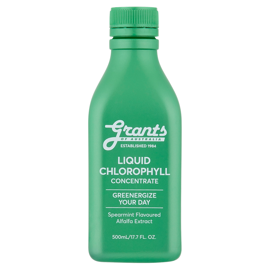 Love yourself from the inside out with Grants Liquid Chlorophyll! This bottle of green goodness is made from alfalfa concentrate, is naturally alkaline and contains vitamins, minerals and every essential amino acid. Chlorophyll helps cleanse the body tissues of impurities and toxins and improves energy and wellbeing. Greenergize your day by simply adding a splash into your morning smoothie, juice or water!