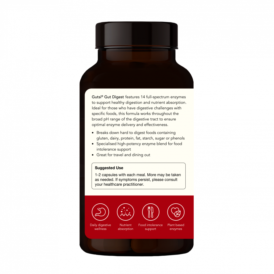 Gutsi® Gut Digest is your go-to enzyme formula to support multiple food intolerances and daily digestive wellness.