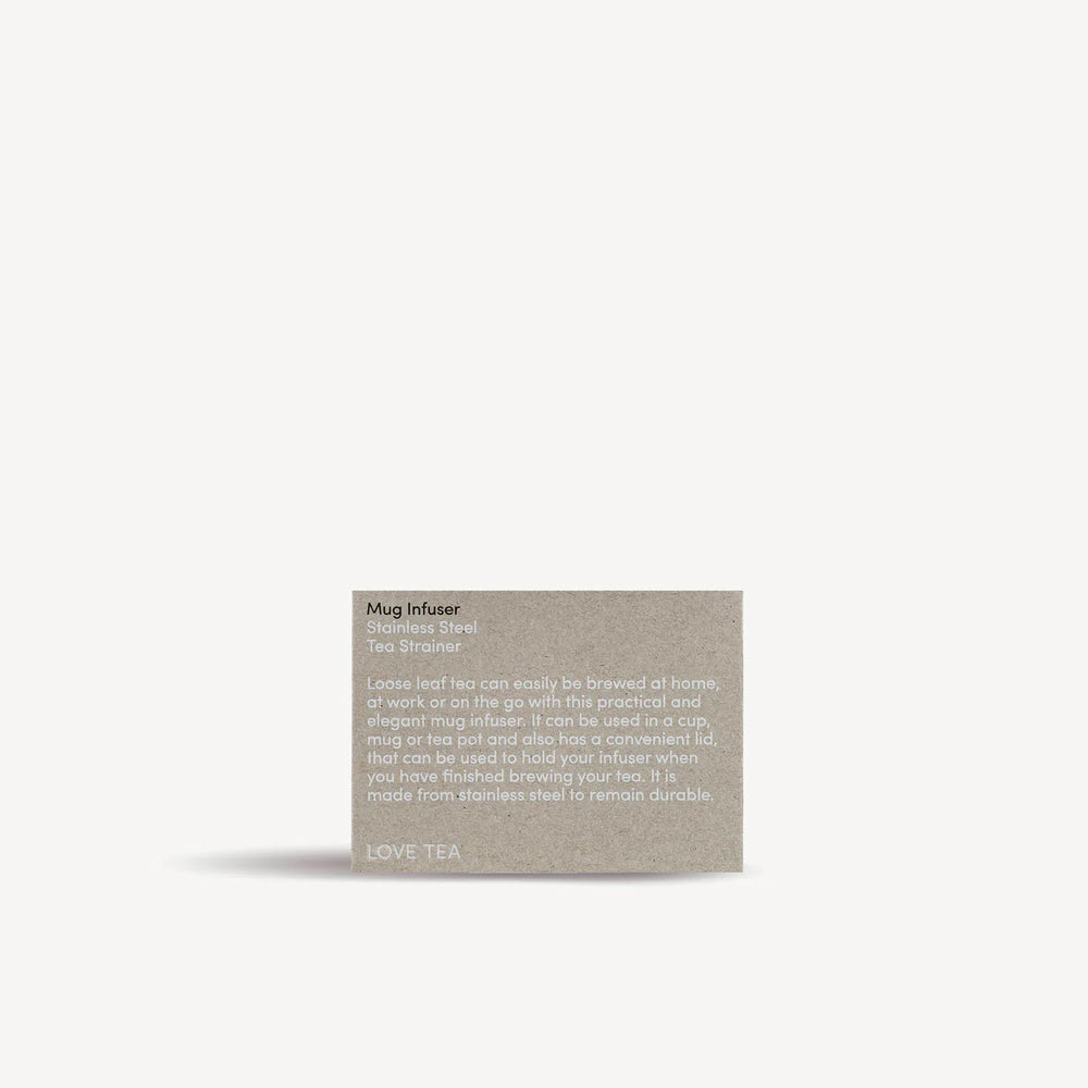 Loose leaf tea can easily be brewed at home, at work or on the go with this practical and elegant, mug infuser. It can be used in a cup, mug or teapot and also has a convenient lid, that can be used to hold your infuser when you have finished brewing your tea. It is made from stainless steel to remain durable.