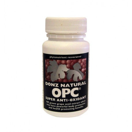 DONZ Natural OPC™ Super-Antioxidant …the recipe 70mg OPC guaranteed 95% proanthocyanidins standardized grape seed extract, Bioflavonoids-citrus lemon, Resveratrol, hesperidin and rutin; Rosehip; Red and Blue Berries; Ester C; Bromelain digestive enzymes; Kelp naturally containing iron, calcium, magnesium, selenium, potassium, vitamin A, C, D, E, K, B1, B2, B12, aminos.