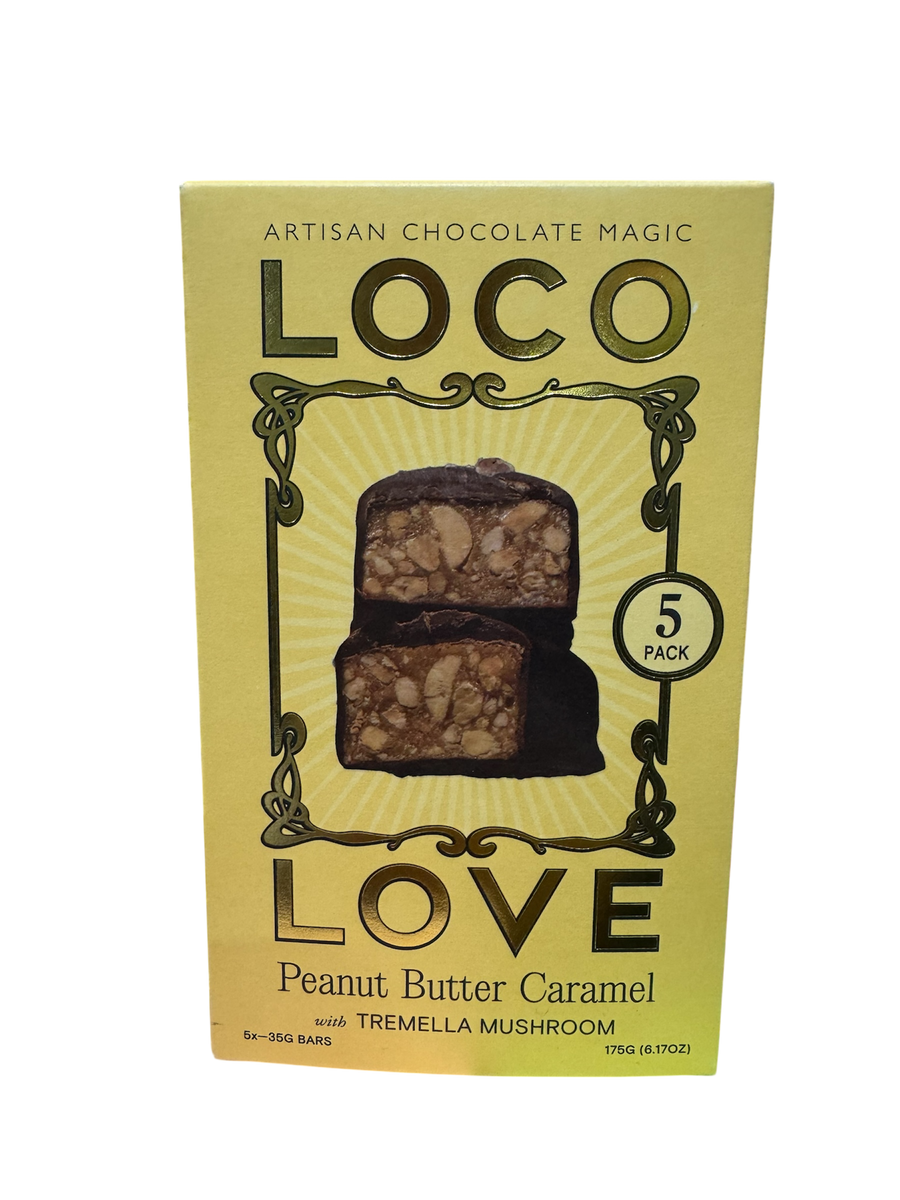 An irresistible blend of vegan caramel and toasted peanut, spiked with beauty food Tremella mushroom. Infused with our own handmade peanut butter; it’s smooth and crunchy, not overly sweet, slightly salty. We couldn’t find a peanut butter on the market that didn’t have nasty additives like vegetable oil so we made our own. We’re resourceful like that.