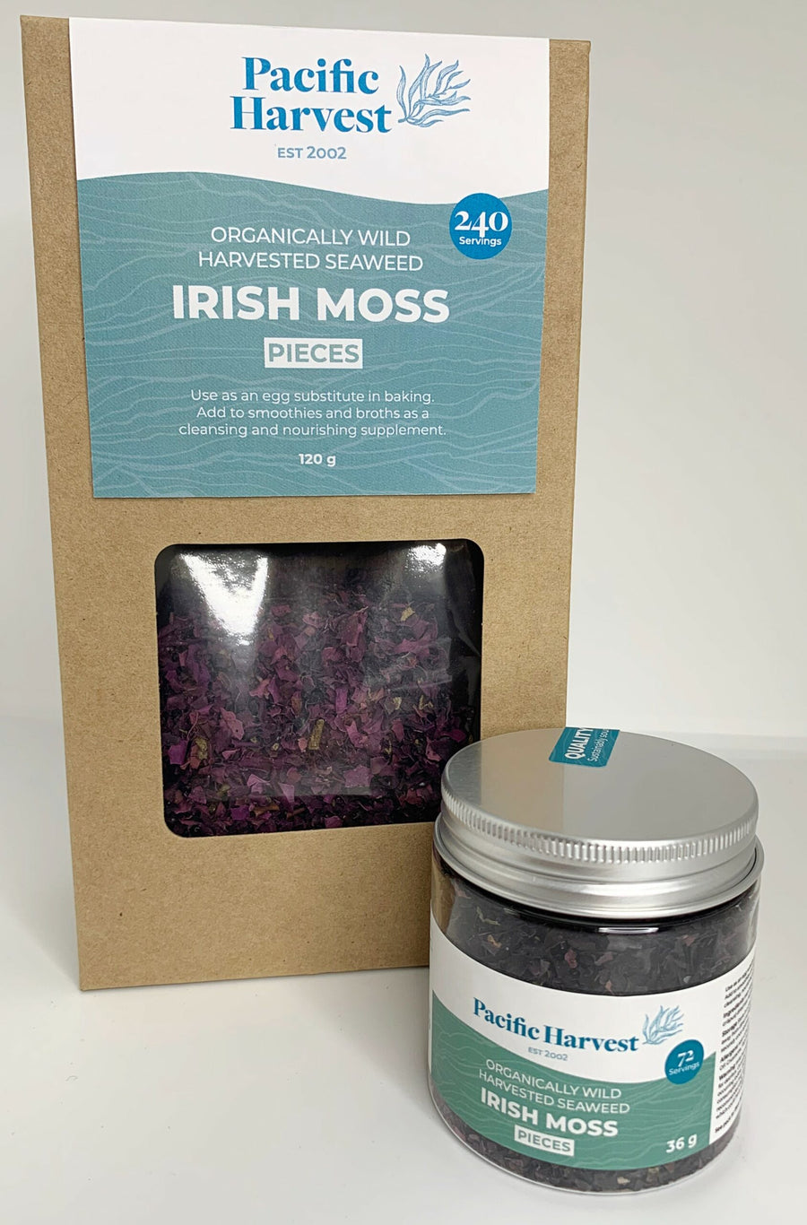 Irish Moss (Chondrus crispus) is also a plentiful source of fibre, vitamin K, calcium, iron, magnesium, zinc and many other nutrients (this can vary depending on seasonality).