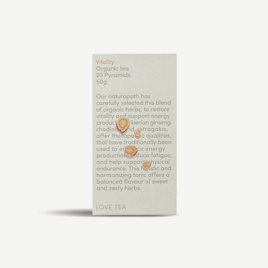 Carefully selected, this blend of organic herbs restores vitality and support energy production. Siberian ginseng, rhodiola, hibiscus and astragalus, offer therapeutic qualities, that have traditionally been used to enhance energy production, reduce fatigue, and help support physical endurance. This holistic and harmonizing tonic offers a balanced flavour of sweet and zesty herbs.