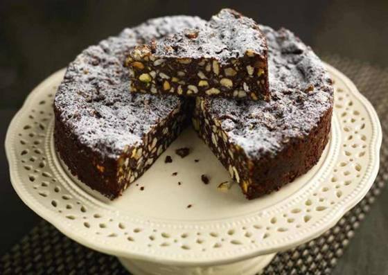 Nelson bush honey, figs, roasted almonds, roasted walnuts, mixed peel, dark chocolate (cocoa solids 70% min, cocoa mass, sugar, cocoa butter, soy lecithin), certified organic brown rice flour, tapioca starch, cocoa powder, mixed spice, xanthan gum (E415).