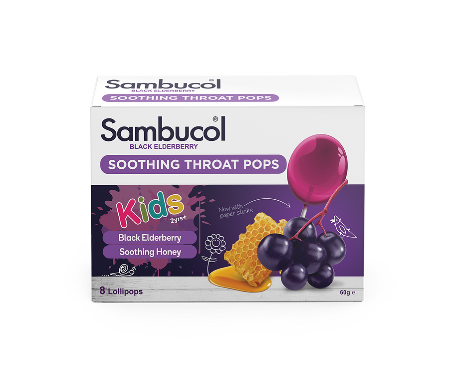 Sambucol ® Soothing Throat Pops contain delicious unique black elderberries, which are rich in antioxidants and bursting with flavour that your kids will love.