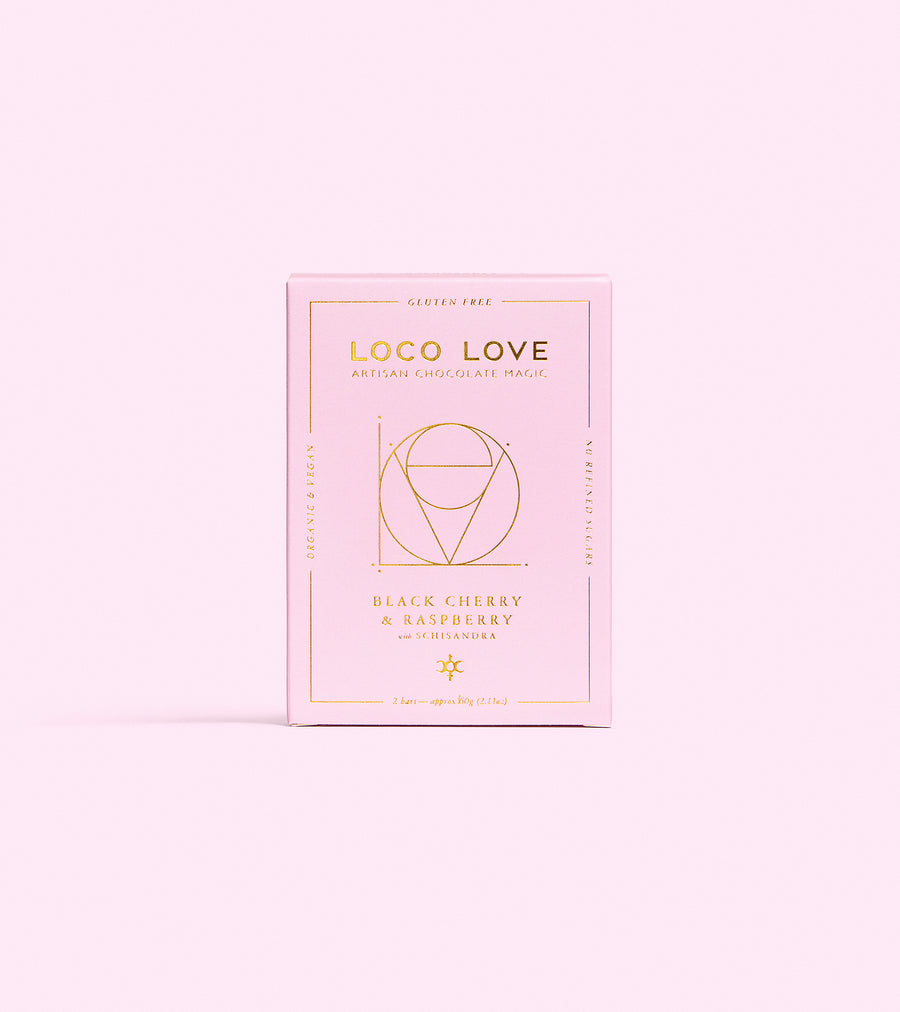cacao paste, cacao butter, coconut blossom sugar, tahini, coconut blossom nectar, dried cherries (apple juice sweetened), schisandra berry powder, black cherry oil, *celtic salt