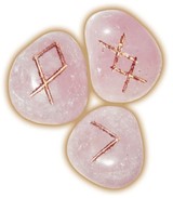 Bring new energy to your divination, magic, and meditation practices with runes! Carved onto genuine rose quartz are the sacred runic symbolsâ??the magical language of the northern gods. The wisdom of the Runes is a gift from the very Earth itself. It is only filling then that these twenty-five ancient Nordic symbols be etched into beautiful rose quartz. Rose Quartz, with its calming, gentle energy, brings peace and spiritual balance. It is a perfect medium to enhance the divinatory properties of the runes. 25 engraved gemstones, a 32 page leaflet and velvet bag.